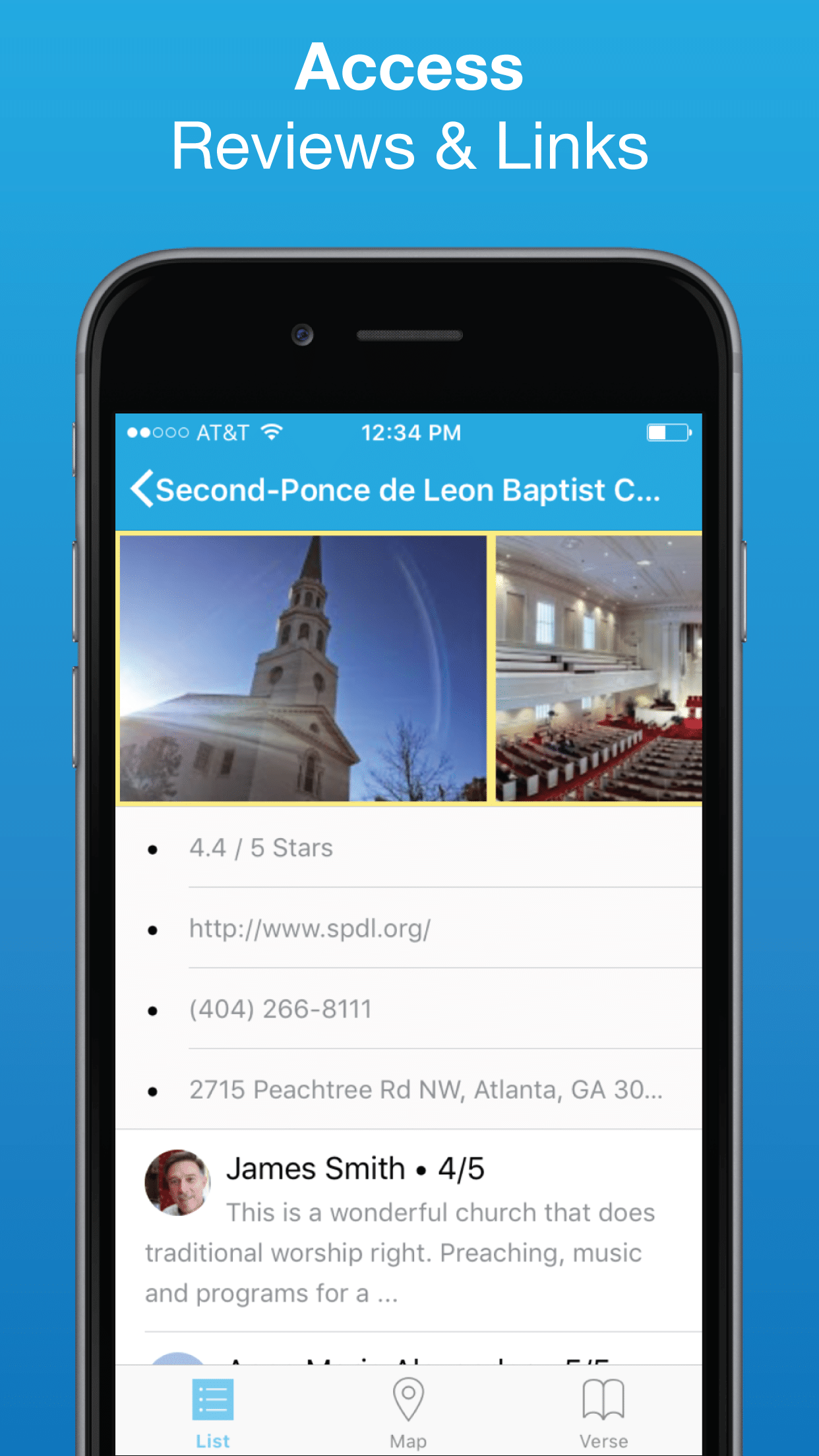 A simple tap allows you to sort your list by Distance instead, or you can use the search bar to look for a particular church you have in mind! You can also view churches on a map view by tapping the Map button on the bottom navigation bar. However, Church Finder is not limited to just finding churches.